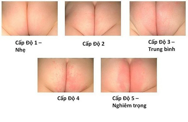 Khi thấy bé xuất hiện những triệu chứng bị hăm đầu tiên như: ửng đỏ, căng da (tập trung nhiều ở vùng xung quanh hậu môn) sau đó các vết đỏ đậm hơn làm bé đau rát, mẹ cần bỏ bỉm, tã để vùng mông bé được thông thoáng.